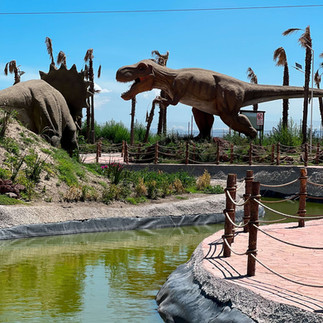 El parque se destaca por su innovador río jurásico que rodea sus instalaciones, sumergente en un entorno prehistórico. La aventura continúa con una emocionante tirolesa que brinda una perspectiva única del paisaje de dinosaurios.