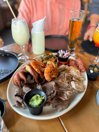 En este lugar podrás encontrar todo lo que te imagines con el mar, parrilladas, ceviches, aguachiles, todo frio o bien cocido y por si fuer poco también cuentan con opciones de carne, por si no eres tan fan de los mariscos, así como otras alternativas para todos los paladares, como ensaladas, etc. Nuestra recomendación es que si vas con mas personas se pidan una parrillada mar y tierra hay para todos los integrantes y quedaran mas que satisfechos.